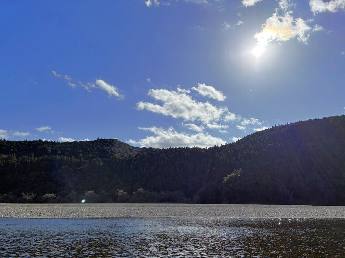 上下の雲に広がっていて、とても綺麗でした!(下に写っているのは観光バスの屋根です)